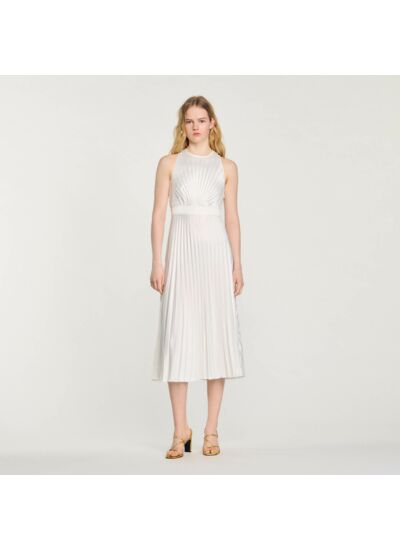 Quelle matière compose la robe longue plissée Sandro ? La robe est confectionnée dans un tissu léger et fluide, idéal pour assurer un tombé élégant et un confort optimal tout au long de la journée.
