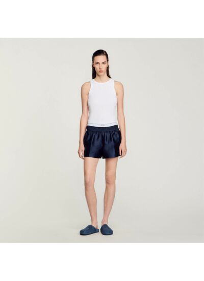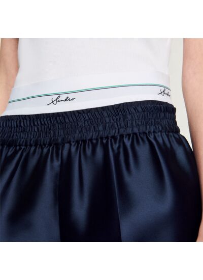 Ce short 2 en 1 en satin Sandro est-il adapté pour un look à la fois décontracté et chic ? Oui, sa conception en satin lui confère une élégance naturelle tandis que sa coupe 2 en 1 assure confort et polyvalence, parfait pour passer d’une tenue décontractée à une allure plus sophistiquée.