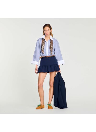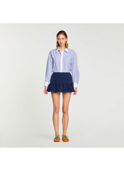 Short muni d'un large volant esprit jupe et d'une fermeture zippée sur le côté.