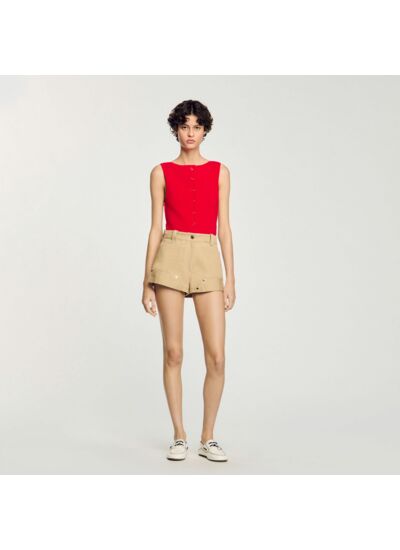 Comment ce short Sandro se distingue-t-il des autres modèles ? Il combine l’esthétique moderne du style carpenter avec la qualité reconnue de Sandro, offrant un vêtement à la fois fonctionnel et tendance, parfait pour renouveler votre garde-robe estivale.