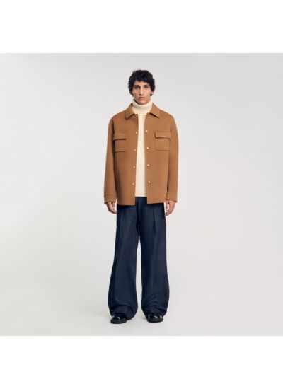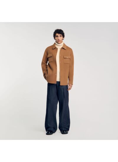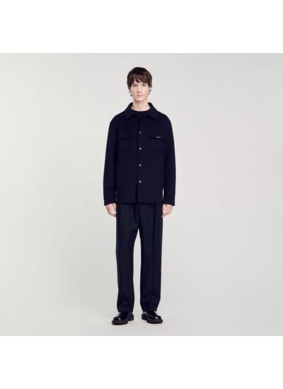 Surchemise double face Sandro Homme Col chemise Manches longues Poignets boutonnés Pressions ton sur ton vernies Poignets pressionnés avec fente 2 poches plaquées à rabat poitrine 2 poches cotés Bas liquette Logo SANDRO en métal sur le rabat de la poche