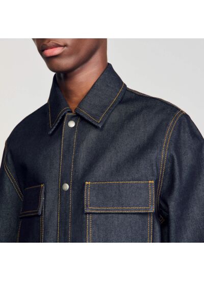 Quelle est la matière principale de cette surchemise en jean Sandro ? Cette surchemise est conçue en denim de qualité, garantissant robustesse et confort pour un usage quotidien.