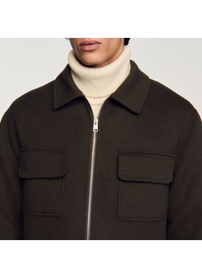 Surchemise double face à manches longues munie d'une fermeture zippée et de deux poches plaquées à la poitrine.