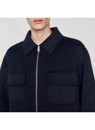 Surchemise double face à manches longues munie d'une fermeture zippée et de deux poches plaquées à la poitrine.