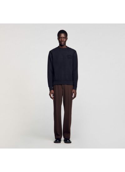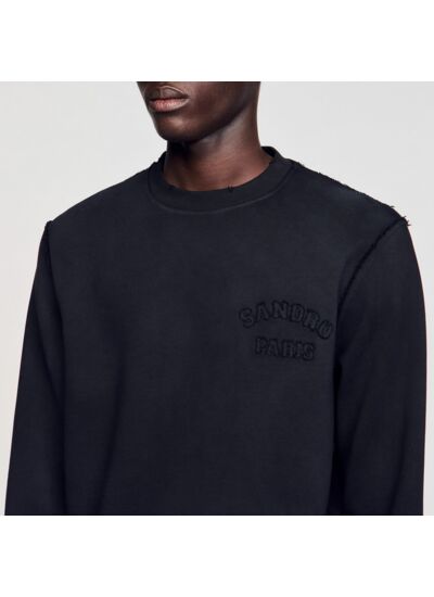 Sweatshirt col rond en molleton délavé, coupe classique, avec patch SANDRO ton sur ton.