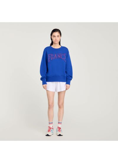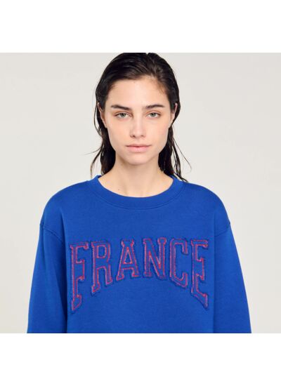Sweatshirt large à col rond et manches longues ornée de lettres brodées France sur le devant.