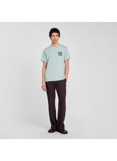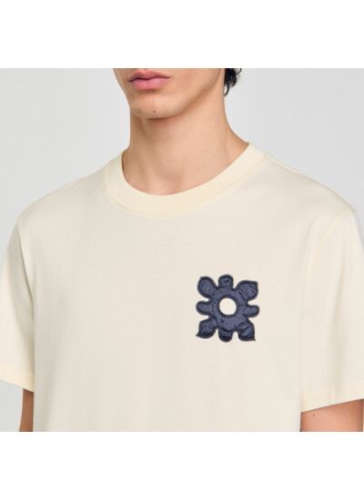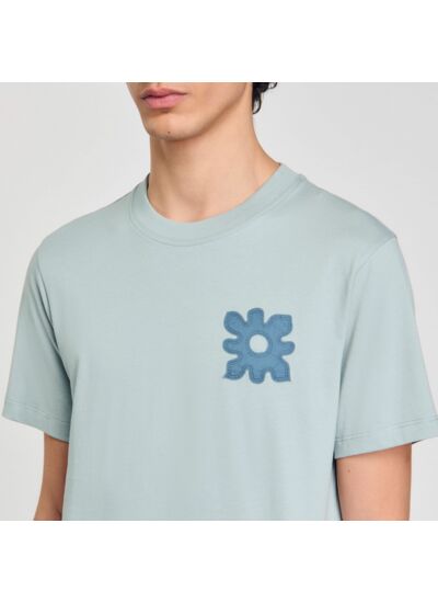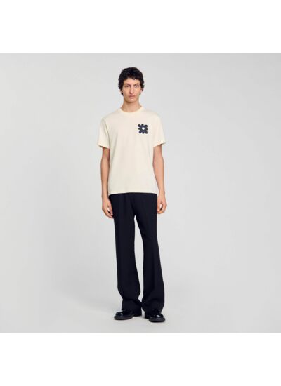 T-shirt en coton muni d'un col rond et de manches courtes, orné d'un patch fleur à la poitrine.
