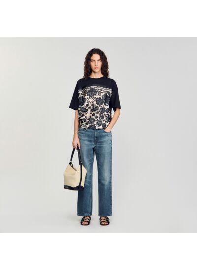 Ce t-shirt Sandro est-il fidèle à la taille indiquée ? Ce t-shirt à imprimé fleuri Sandro suit les tailles standards. Pour un ajustement parfait, choisissez votre taille habituelle. Comment entretenir ce t-shirt pour préserver l’imprimé ? Lavez-le à l’envers à 30 degrés avec des couleurs similaires, évitez le sèche-linge et repassez-le sur l’envers pour préserver la qualité de l’imprimé. Ce t-shirt convient-il pour un look décontracté ou plus habillé ? Sa coupe et son imprimé fleuri en font une pièce polyvalente, idéale pour un style casual chic ou associée à une veste pour une tenue plus sophistiquée. De quel matériau est composé ce t-shirt Sandro ? Ce t-shirt est conçu dans un tissu de qualité, confortable et respirant, garantissant un porté agréable tout au long de la journée. Puis-je porter ce t-shirt toute l’année ? Oui, sa matière légère et son design intemporel en font un choix adapté aux saisons intermédiaires et aux superpositions en hiver.