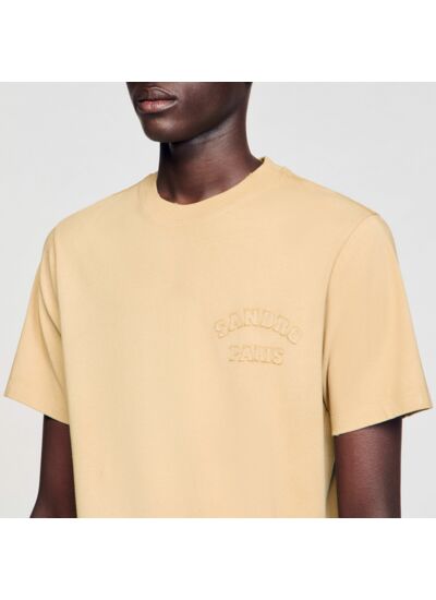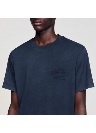T-shirt en coton délavé et usé, coupe classique, avec patch SANDRO sur la poitrine.