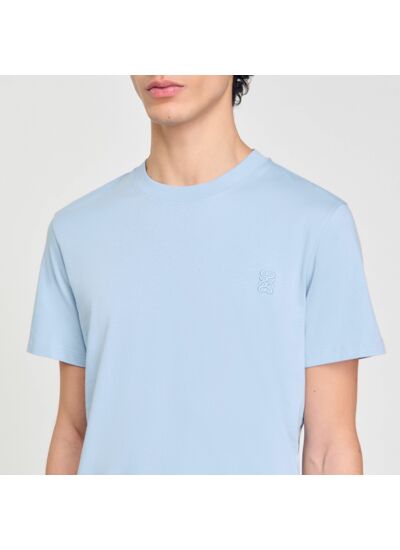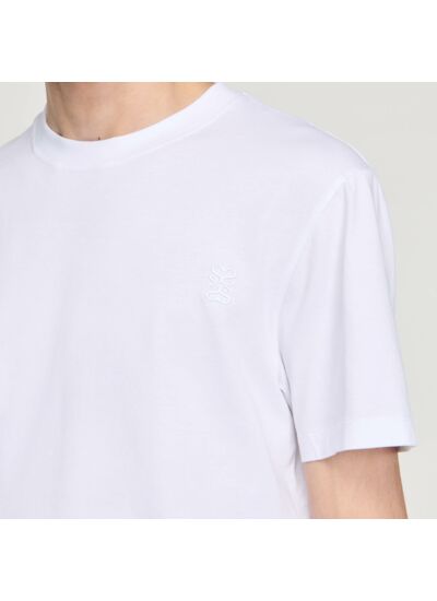 T-shirt en coton muni d'un col rond et de manches courtes, et orné d'une broderie signature ton sur ton à la poitrine.
