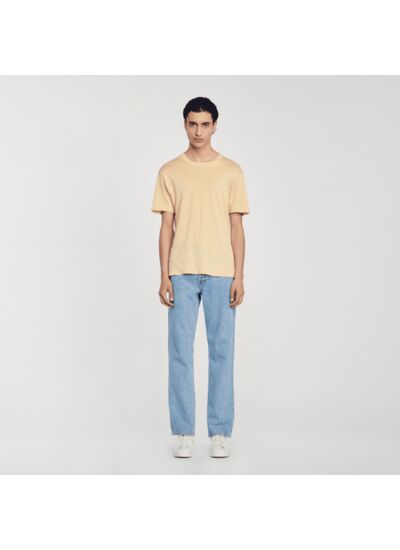 T-shirt en lin muni d'un col rond et de manches courtes.