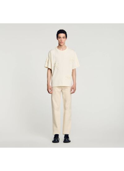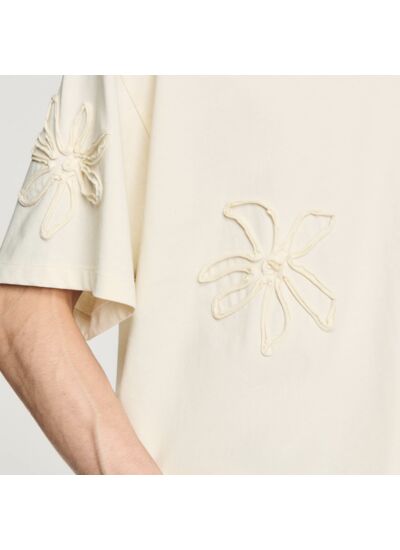 T-shirt en coton muni d'un col rond, de manches courtes et orné de fleurs en biais ton sur ton.