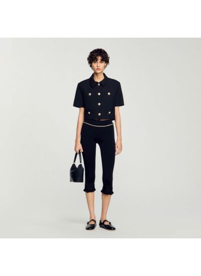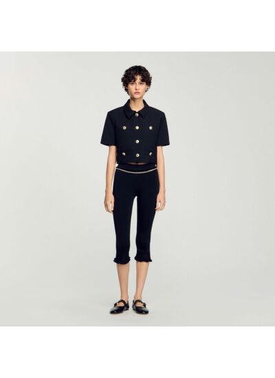 Cette veste à manches courtes Sandro convient-elle pour une tenue de mi-saison ? Oui, sa coupe légère et ses manches courtes en font un choix idéal pour les transitions entre saisons, offrant confort et style sans surchauffe. De quels matériaux est composée cette veste ? La description ne précise pas les matériaux, mais Sandro privilégie généralement des tissus de qualité alliant élégance et durabilité. Comment entretenir cette veste Sandro ? Il est recommandé de suivre les instructions spécifiques sur l’étiquette pour préserver la coupe et la matière, souvent un nettoyage à sec est conseillé pour ce type de vêtement. Cette veste peut-elle s’intégrer facilement à un look casual ou formel ? Absolument, sa coupe épurée et moderne permet de la porter aussi bien avec un jean pour un style décontracté qu’avec un pantalon habillé pour une allure plus sophistiquée. Quelle taille choisir pour un ajustement parfait ? Pour un confort optimal, il est conseillé de se référer au guide des tailles Sandro, en tenant compte de la coupe ajustée propre à la marque.