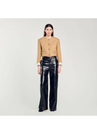 Cette veste courte en laine mélangée Sandro est-elle adaptée aux températures froides ? Oui, grâce à sa composition en laine mélangée, cette veste offre une bonne isolation thermique tout en restant légère, idéale pour affronter les saisons fraîches avec élégance. Comment entretenir cette veste pour préserver sa qualité ? Il est recommandé de suivre les instructions d’entretien indiquées sur l’étiquette, généralement un nettoyage à sec pour préserver la texture et la forme de la laine mélangée. Cette veste convient-elle à un style formel ou décontracté ? Sa coupe courte et sa matière raffinée permettent de la porter aussi bien en tenue habillée qu’en look casual, offrant une grande polyvalence pour diverses occasions. Quels sont les avantages de choisir une veste Sandro en laine mélangée ? Sandro garantit une qualité supérieure avec des matériaux soigneusement sélectionnés, alliant confort, durabilité et un design contemporain qui valorise la silhouette. Cette veste est-elle facile à assortir avec d’autres pièces de ma garde-robe ? Oui, sa coupe épurée et sa teinte neutre facilitent les associations avec pantalons, jupes ou jeans, pour un style toujours chic et maîtrisé.
