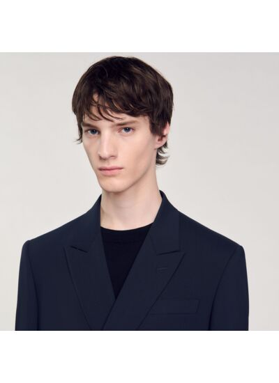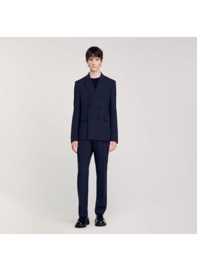 Veste de costume à double boutonnage croisé, munie de manches longues, d'un col à revers et de poches à rabat.