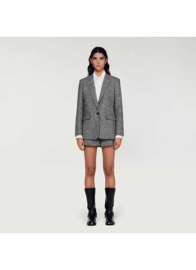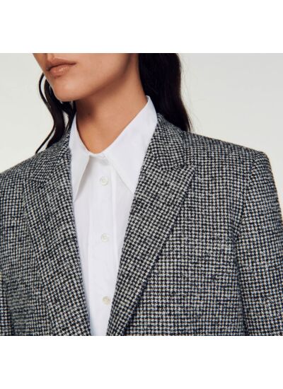 Cette veste de tailleur pied de poule Sandro est-elle adaptée à un usage professionnel ? Oui, son design élégant et sa coupe structurée en font un choix idéal pour un look professionnel soigné, tout en apportant une touche de modernité grâce au motif pied de poule classique.