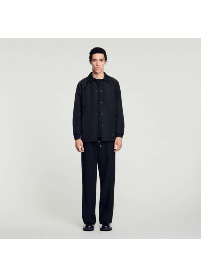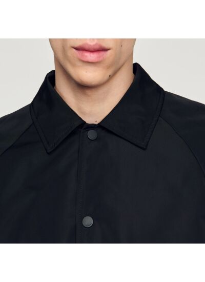 Veste en matière technique à coupe droite, munie d'un col chemise, de manches longues à poignets élastiqués, et ornée d'un logo SANDRO en métal.