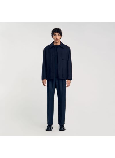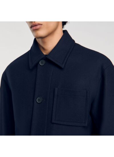 Veste worker en drap de laine à coupe droite classique, munie d'un col chemise, de manches longues et d'une fermeture boutonnée.