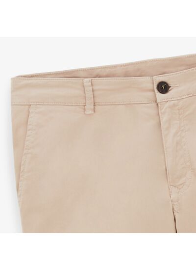 Adoptez un style décontracté et raffiné avec le Bermuda chino 200 coupe confort en mastic. Sa coupe comfort fit et ses surpiqûres ton sur ton ajoutent une touche décontractée, tandis que la braguette zippée, le bouton fantaisie ceinture et les 7 passants ceinture apportent une élégance discrète. Les détails soignés comprennent une broderie 200 jaune à l'intérieur de la ceinture, un tissu chevron off white à l'intérieur des poches, et un badge tricolore, créant ainsi un look moderne et sophistiqué pour vos journées estivales.