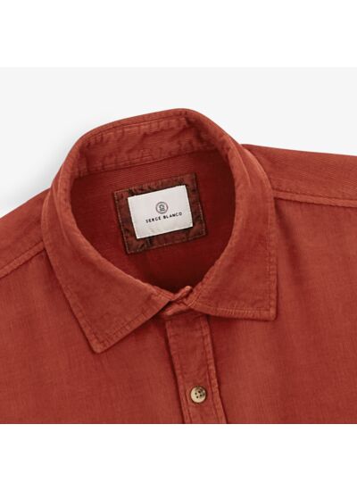 Plongez dans le luxe décontracté avec la chemise en velours courge de SERGE BLANCO. Ses détails raffinés, comme les baleines amovibles au col et les poignets arrondis imprimés MONTANA, ajoutent une touche d'élégance subtile. Confectionnée dans un somptueux velours et ornée d'un badge ton sur ton couleur abricot sur la poitrine, elle incarne l'alliance parfaite entre confort et style sophistiqué.