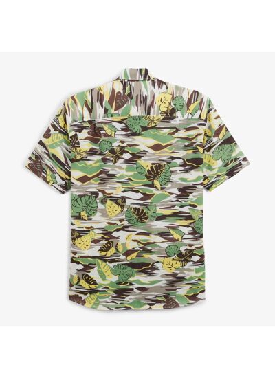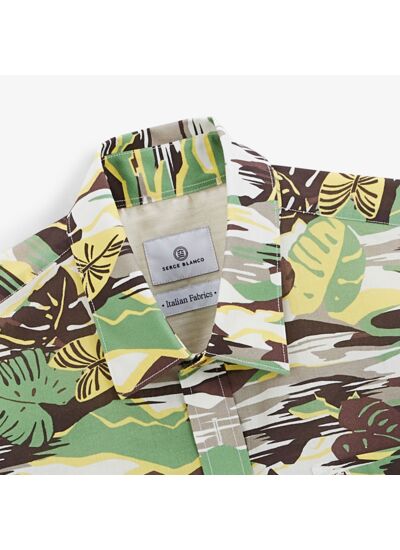 Cette chemise à manches courtes regular au doux coloris yuzu arbore un imprimé feuilles qui évoque la fraîcheur de l'été. Avec son bas arrondi, ses col baleines amovibles et ses boutons marron, elle allie élégance et décontraction. Le détail bas de corps en mouche chevron, la piqure bouton col + corps verte, la poche poitrine arrondie côté coeur et la broderie ton sur ton sur la poitrine en font une pièce raffinée pour vos journées ensoleillées.