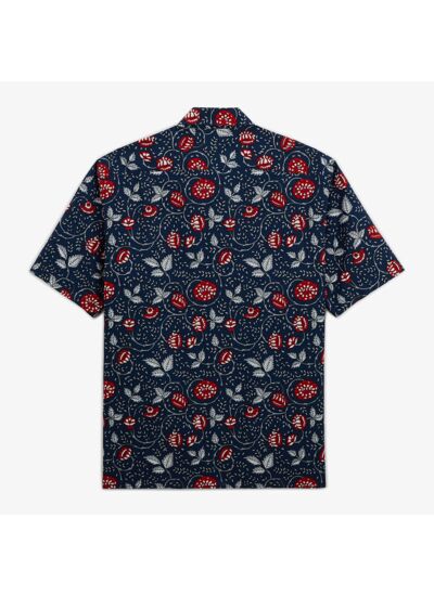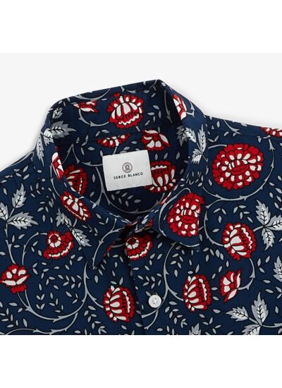 La chemise à manches courtes San indigo imprimé batik est un choix estival élégant. Faite dans un tissu fleuri, elle présente une coupe bas droit et des boutons blancs qui lui confèrent un style raffiné. Avec une poche poitrine arrondie côté cœur, des détails en piqure bouton rouge et la broderie du logo ton sur ton sur la poitrine, cette chemise ajoute une touche de sophistication à votre tenue estivale.