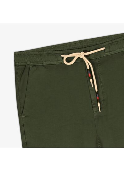 Plongez dans le confort et l'élégance décontractée avec notre pantalon Chino modèle 738 dans une nuance army tendance. Doté d'une ceinture élastiquée et d'un cordon fantaisie, il offre un ajustement parfait et un style moderne. Les poches italiennes et passepoilées ajoutent une touche de praticité, tandis que le badge discret ajoute une note subtile d'authenticité. Parfait pour une allure décontractée tout en restant chic.
