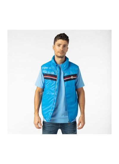 Cette doudoune sans manches issue de notre collection PLAY arbore une large bande tricolore sur la poitrine avec le logo SERGE BLANCO. Elle est également munie d'une fermeture zippée à double curseur avec tirette en métal à logo ainsi que de deux poches latérales zippées. Le bas de la doudoune est resserré par le biais d'un élastique.