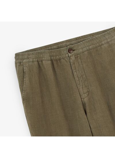 Découvrez le pantalon Chino modèle 738 en lin militaire, une option élégante et confortable pour votre tenue. Les détails subtils, tels que la surpiqûre ton sur ton, la ceinture élastiquée, et les boutons fantaisie, apportent une touche raffinée. Les poches italiennes et les poches plaquées à l'arrière ajoutent une touche de fonctionnalité, tandis que le tissu en lin vous assure un confort optimal par temps chaud.