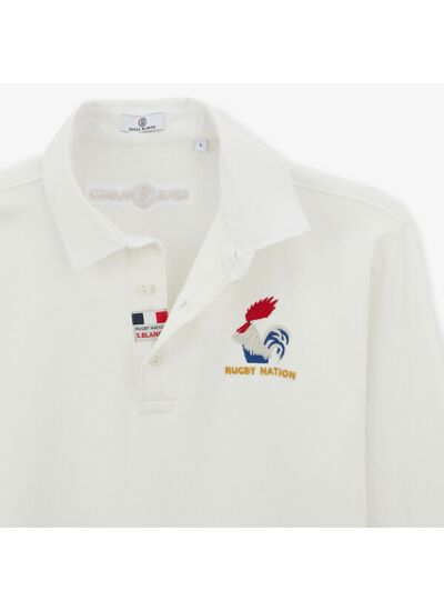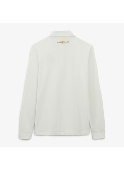 Découvrez notre polo blanc cassé à manches longues, orné d',une broderie de coq sur la poitrine. Confectionné en maille jersey douce, il offre un confort optimal. La patte de boutonnage visible et les fentes latérales ajoutent une touche élégante à ce polo classique. Le logo SERGE BLANCO doré complète son style raffiné. Avec son sous-col en gabardine et ses bas de manches avec poignets côtelets, ce polo est un choix parfait pour les occasions décontractées.
