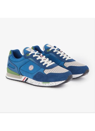 Les sneakers Chamonix bicolores aviateur de SERGE BLANCO combinent une construction légère avec un mélange de matières coordonnées, offrant confort et style. La languette et la cheville rembourrées garantissent un confort optimal, tandis que le bout renforcé assure la durabilité. Ces sneakers arborent des bandes tricolores et une peinture mouchetée fantaisie à l'avant de la semelle, ajoutant une touche d'originalité à votre look. La semelle crantée antidérapante assure une adhérence optimale, et le logo emblématique est imprimé sur le côté de la tige. Avec une étiquette tissée SERGE BLANCO PLAY sur la languette et un détail tricolore pour le passage des lacets, ces sneakers allient style et fonctionnalité.
