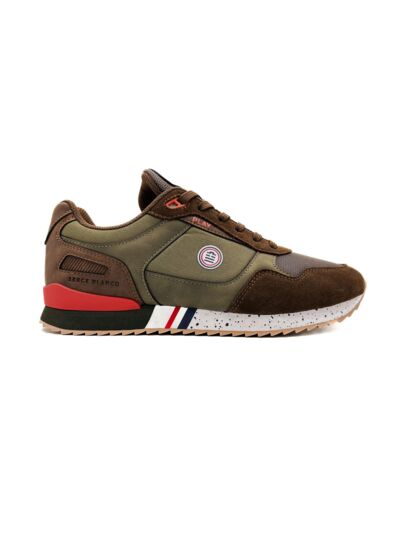 - Étiquette tissée SERGE BLANCO PLAY sur la languette et détail tricolore pour le passage des lacets