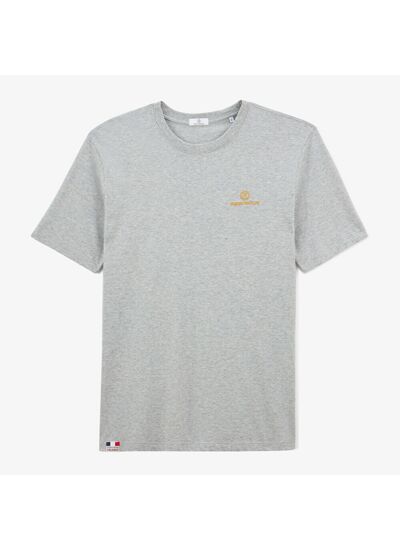 Le T-shirt Rugby Nation gris chiné à col rond est le choix parfait pour les fans de rugby. Confectionné en maille de coton jersey de qualité, il offre un confort optimal toute la journée. Avec un imprimé coq dans le dos, une broderie jaune or du logo avec l',inscription RUGBY NATION sur la poitrine coté coeur et une vignette tissée sur le bas du vêtement, ce T-shirt est à la fois élégant et sportif. Le col rond apporte une touche décontractée tandis que les manches courtes offrent une excellente liberté de mouvement. Optez pour le T-shirt Rugby Nation pour afficher fièrement votre passion pour le rugby !