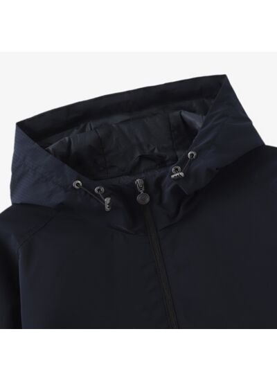 Optez pour l'élégance intemporelle avec la veste déperlante Doron en bleu marine. Cette pièce polyvalente est équipée d'une fermeture Éclair à double curseur et d'un curseur logoté Serge Blanco, offrant à la fois style et fonctionnalité. Les bas de manches en rib ajoutent une touche de sophistication, tandis que les deux poches sur le côté vous offrent praticité et commodité. Une veste essentielle pour toute garde-robe moderne.