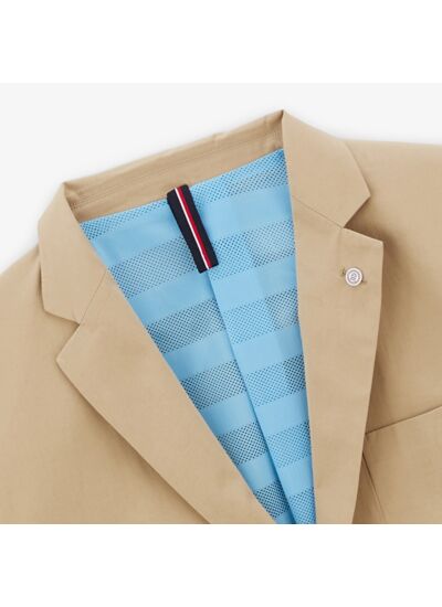 Le blazer : un indispensable du vestiaire masculin, ici décliné dans une couleur beige mastic. Cette veste Simon est composée d'un col tailleur avec revers du pied de col, d'une silhouette à deux boutons avec manches longues à boutonnières ainsi que d'une poche poitrine et deux poches plaquées arrondies latérales. Le col de cette veste est orné d'un pin's SERGE BLANCO.