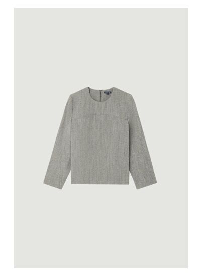 Affirmez votre élégance avec cette blouse en sergé de laine gris chiné, conçue pour sublimer votre silhouette avec sobriété et modernité. Un essentiel raffiné qui s’adapte à toutes vos envies de style.