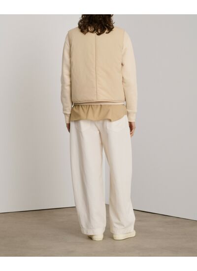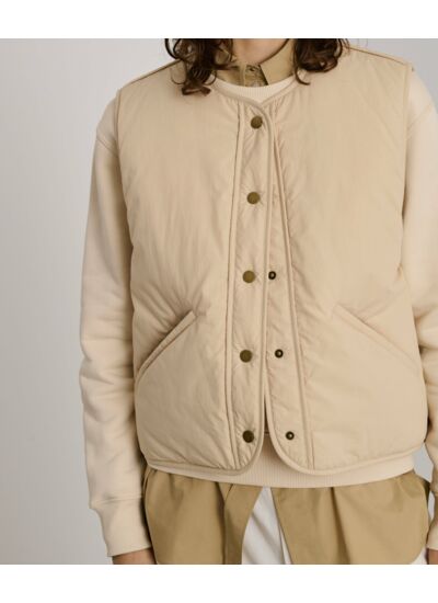 Ce blouson sans manches vous garantit chaleur et liberté de mouvement sans encombrement. Sa matière naturelle 100 % coton assure respirabilité et douceur, pour un confort durable tout au long de la journée. Polyvalent, il s’adapte à toutes vos envies de layering et s’intègre facilement à votre garde-robe.