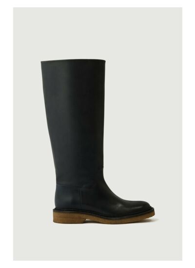 Composition : 100% cuir de vache pour la tige et la doublure. Semelles en crêpe. Hauteur de tige : 40 cm. Fermeture zippée latérale. Bouts arrondis.