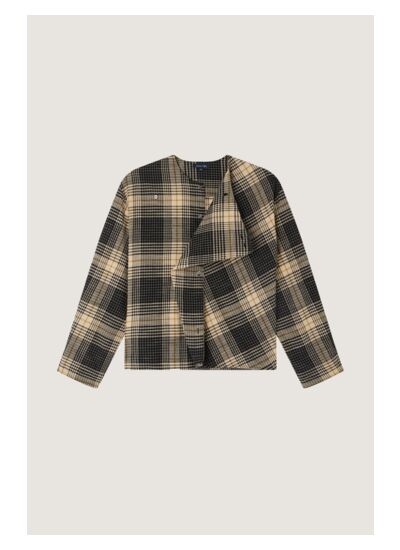 Conçue en voile de coton tissé à carreaux façon tartan, cette blouse allie légèreté et structure. Sa coupe droite et ample offre un confort optimal, tandis que les manches longues larges et les découpes surpiquées soulignent un style travaillé et unique. L’encolure ronde avec ouverture croisée et le panneau drapé devant permettent plusieurs façons de la porter, du plus classique au plus audacieux.