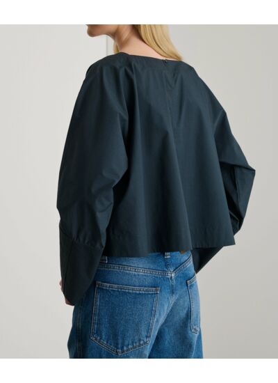 Conçue dans une popeline de coton légère, ARMAND joue sur les contrastes grâce à ses parties doublées au col, aux manches et au bas, créant un subtil effet de transparence. Son encolure ronde et sa fermeture par bouton au dos ajoutent une touche raffinée et pratique, pour un porté confortable et facile à associer.