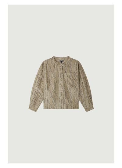 Sublimez votre allure avec cette chemise en soie au charme discret et contemporain. Son col mao et son imprimé moiré apportent une touche d’élégance naturelle à chaque tenue.