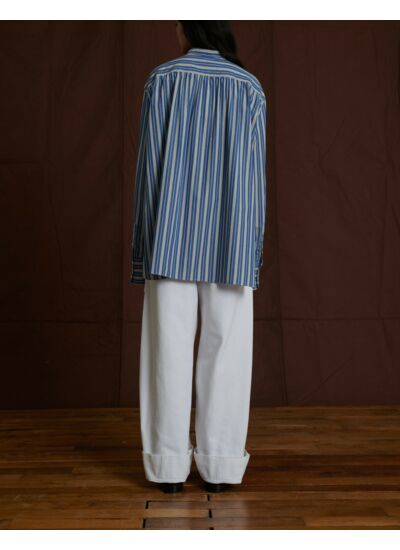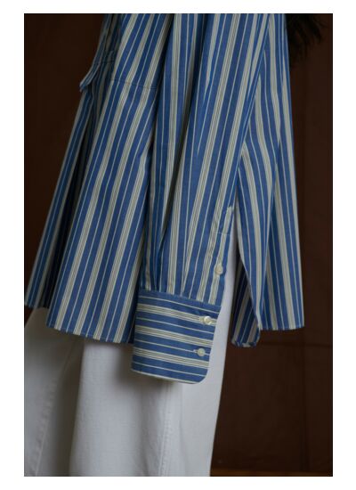 Affirmez votre style avec la chemise Seville, un classique revisité aux rayures bleues et blanches. Son volume oversize et ses détails subtils font de cette pièce un incontournable du dressing contemporain.