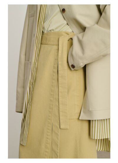 Conçue en denim teint, cette jupe se distingue par sa toile structurée et sa ceinture épaisse à nouer qui souligne la taille avec finesse. La superposition de panneaux et la grande poche avant apportent caractère et praticité, tandis que la longueur cheville offre une silhouette fluide et féminine, parfaite pour un look à la fois professionnel et décontracté.