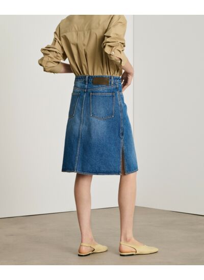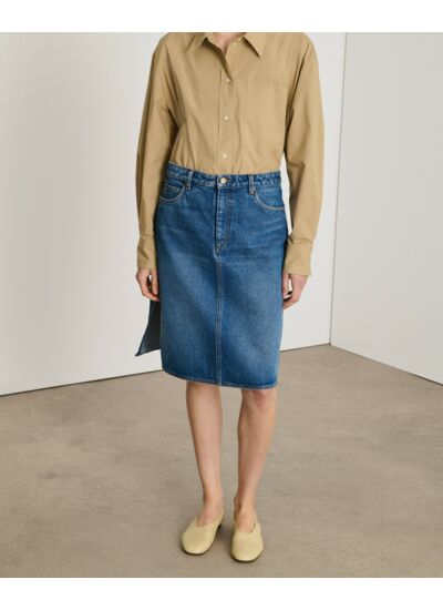Sublimez votre allure avec la jupe Elyne, un incontournable du denim revisité pour un style moderne et affirmé. Sa coupe droite et sa longueur genoux offrent une silhouette élégante, tandis que sa fente latérale assure confort et liberté de mouvement.