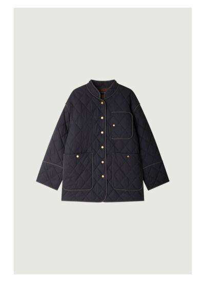 Ce manteau matelassé allie confort et sophistication grâce à son volume généreux qui facilite la superposition. Son ouverture à boutons pressions garantit une fermeture pratique et épurée, tandis que ses multiples poches plaquées – deux devant, une poitrine et une intérieure – offrent un espace de rangement fonctionnel sans compromettre l’esthétique. Idéal pour un look urbain et décontracté, il s’adapte à toutes vos tenues.