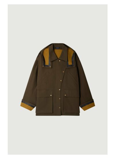 Adoptez l’allure décontractée et sophistiquée avec ce manteau en coton kaki et bronze, pensé pour sublimer chaque silhouette. Sa coupe ample et ses détails fonctionnels en font un incontournable de la saison.
