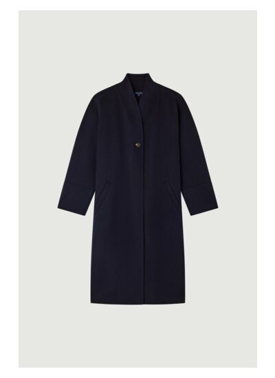 Adoptez l’élégance sans effort avec ce manteau double face en laine et cachemire, conçu pour sublimer toutes vos tenues. Son volume ample et son col montant boutonné offrent une silhouette moderne et polyvalente.