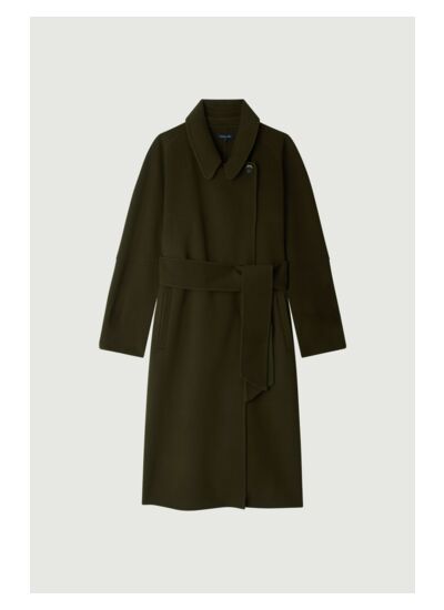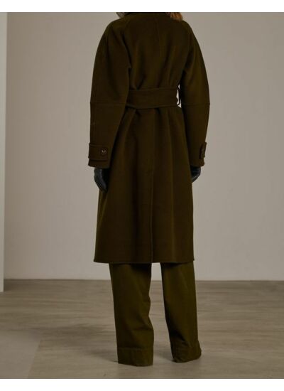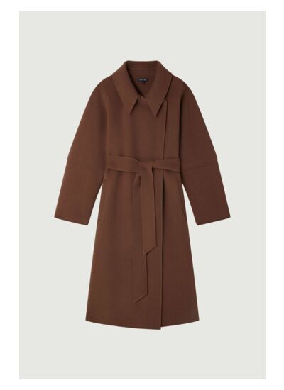 Confectionné dans un tissu double face en laine, ce manteau se distingue par ses découpes au coude et sa fente au dos, qui assurent une aisance de mouvement et une allure contemporaine. La ceinture amovible affine la taille tandis que les poches passepoilées apportent une touche pratique et discrète. Polyvalent, il s’adapte à toutes vos envies grâce à son col amovible fixé par boutons.