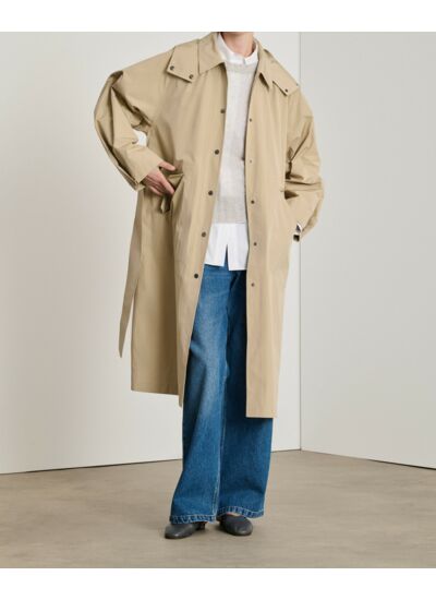 Conçu dans une toile de coton technique, ce manteau offre une structure nette et une résistance optimale aux intempéries. Le minimalisme de sa silhouette est relevé par des détails soignés : col chemise, capuche amovible, manches ajustables et finition intérieure gansée. Pratique et raffiné, il s’adapte à toutes les occasions, du bureau aux sorties en ville.