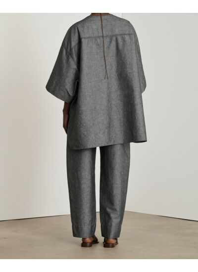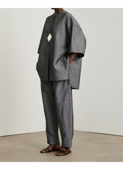 Sublimez votre silhouette avec le pantalon Alouette, un modèle taille haute au volume arrondi qui allie élégance et confort. Sa matière en coton-lin offre un tombé naturel et sophistiqué, parfait pour un look moderne et raffiné.